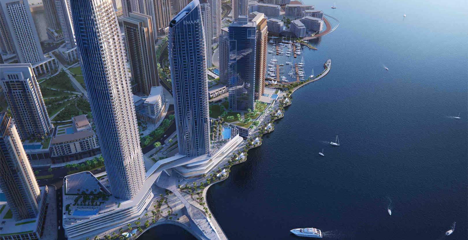 Ideally positioned on the tip of Creek Island and only steps away from the shimmering waters, Address Harbour Point occupies a prime location within Dubai Creek Harbour.